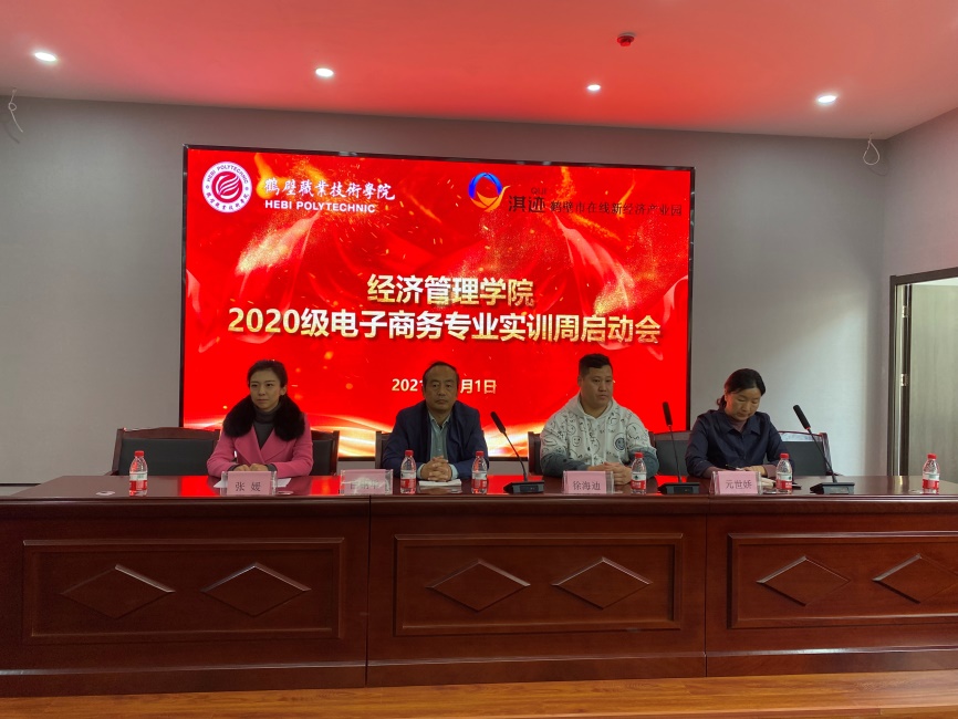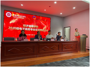 2021年11月1日上午9:00,经济管理公司2020级电子商务专业实训周启动仪式,于鹤壁市在线新经济产业园多功能报告厅顺利举行。经济管理公司负责人元世娇,副经理白钢华、教学办主任张媛、鹤壁新经济产业园营运发展中心总裁兼培训公司经理徐海迪及2020级电子商务专业一百三十多名师生参加本次启动会。会议由管理教研室主任韩颖丽主持。