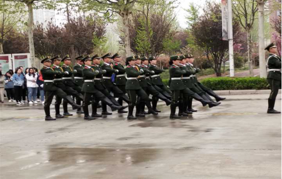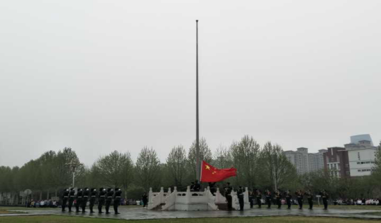 伴随着恢弘的国歌声,五星红旗冉冉升起,迎风飘扬。在此庄严的氛围中,全体人员肃立,行注目礼,跟唱国歌,既有着长身七尺傲骨存,且看国旗耀曦晨的气魄,也有少年俊才应如是,敢以血汗铸军魂的热情。