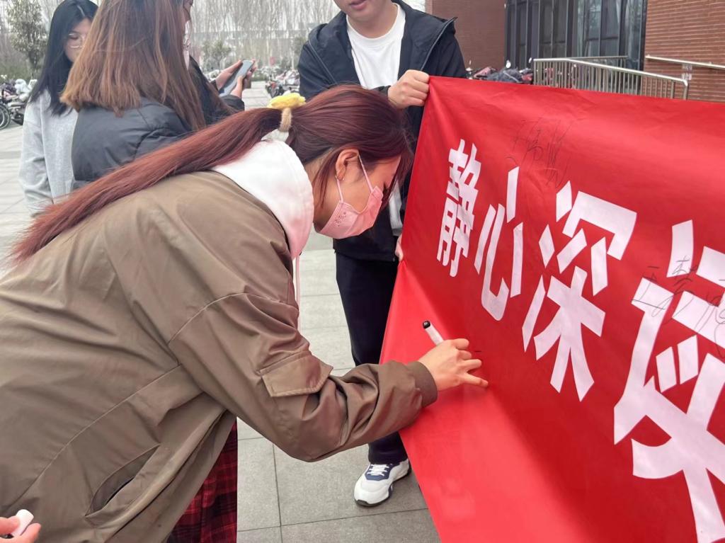 活动现场,一条醒目的条幅引起了同学们的注意。条幅上写着“静心深读,沉浸书海---告别手机碎片化信息,尽享知识盛宴”,鼓励大家积极参与深度阅读。同学们纷纷在条幅上签字,表示将积极倡导和实践深度阅读,共同营造一个良好的阅读氛围。随后,同学们进入图书馆,纷纷放下手机,走进书香四溢的图书馆。他们或独自品味,或三五成群交流心得,沉浸在书海中,品味知识的甘醇。图书馆内书香弥漫,同学们的脸上洋溢着对知识的渴望和对阅读的喜悦。