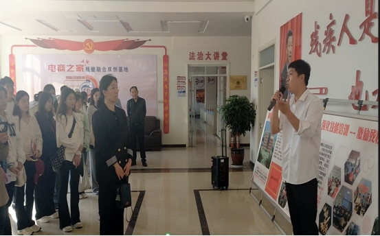 炳良自强双创园总经理、河南炳良电子商务有限公司党支部委员孙系首先带着师生党员参观了励志教育公司党员活动室、残疾人电商岗位工作部、残疾人手工制作岗位工作部、电商直播室、泥塑艺术品制作工作室,详细介绍了公司的发展历史和在公司创业学习培训的典型励志案例。
