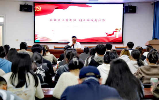 最后,炳良自强双创园董事长、河南炳良电子商务有限公司董事长孙炳良先生(鹤壁市十大道德模范、残疾人个体就业先进个人、河南省自强模范、河南省劳动模范、全国自强模范、全国脱贫攻坚先进个人、中国好人)和师生党员交流分享了他自学成才、自主创业、电商助残、精准扶贫的感人故事,和同学们分享了他对“坚持、毅力、创新、感恩”的认知和践行,他用自己和其他自强自立、乐观向上的残疾人励志典型事例,教育年轻人要树立正确的世界观、人生观和价值观,鼓励年轻人要不畏艰险、顽强拼搏,勇敢面对困难和挫折,活出自信,活出精彩人生。