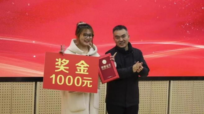 鹤壁市电子商务协会张海军秘书长致辞,经济管理公司教学办负责人刘素芳宣布获奖名单,经管公司经理元世娇、副经理白钢华和多家企业代表为获奖员工颁发奖金和证书。一等奖获奖员工2022级电商班朱鑫鑫表示此次比赛收获满满,将继续努力为乡村振兴发展贡献自己的力量。接着,经管公司教研室主任韩颖丽宣布乡村振兴短视频代运营社团正式成立,企业代表们诚挚祝愿社团能够蓬勃发展。随后,中百盈科技集团董事长、河南工业大学硕士生导师张相生从短视频实战、个人技能学习和实习就业三个方面为同学们带来分享,在场师生们受益匪浅。