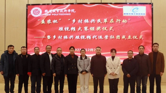 2023年12月28日,经济管理公司联合鹤壁市电商协会在海棠园校区一号报告厅举办“‘益农杯’‘乡村振兴民革在行动’短视频大赛”颁奖仪式暨乡村振兴短视频代运营社团成立仪式。鹤壁市政务大数据中心主任于洪杰、民革鹤壁市委会专职副主委李静、九三学社鹤壁市委专职副主委苏海玲、中百盈科技集团董事长张相生,河南邦太优选食品有限公司副总经理郝文斌,鹤壁窑火实业有限公司董事长张学昆,鹤壁中天电子商务有限公司董事长姬常发,鹤壁云祥职业培训公司董事长王建,河南建木数据科技有限公司董事长贾皓圳、200多名师生参加活动。