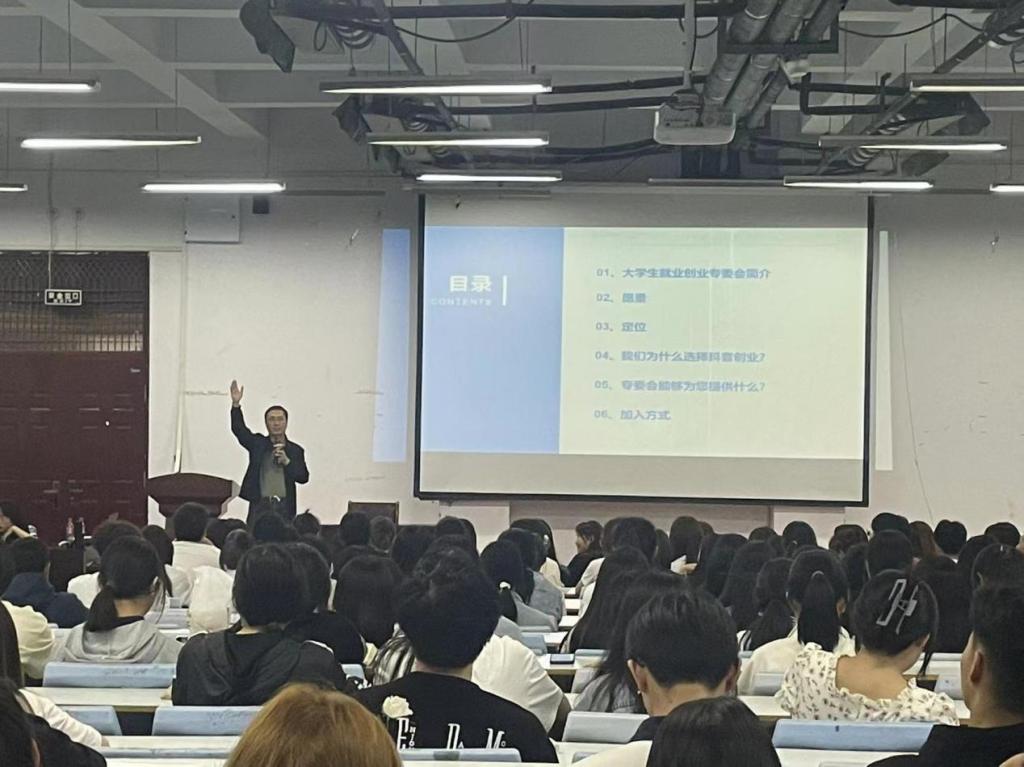 5月22日晚8点,鹤壁市电子商务协会常务副会长张海军,在鹤壁职业技术公司拓新楼阶梯会议室,为200余名在校老员工开展了主题为“老员工如何运用抖音平台开展创业”的第一场分享会。会上,张老师生动详实地讲解了新创立的老员工就业创业专委会,并从愿景、定位、思路和工作方法四个方面为员工规划了未来,通俗易懂地讲解了短视频创业及未来发展的机遇,并激励在座员工要学得一技之长,积极应对就业难的问题。会上,打开了在座员工的新视野,在场员工们认为对于自己的未来方向有了更为清晰的认识,并表示会更加努力地追寻自己的梦想。分享会后,张老师还与有创业想法的员工展开讨论,为他们的未来发展指明了方向。