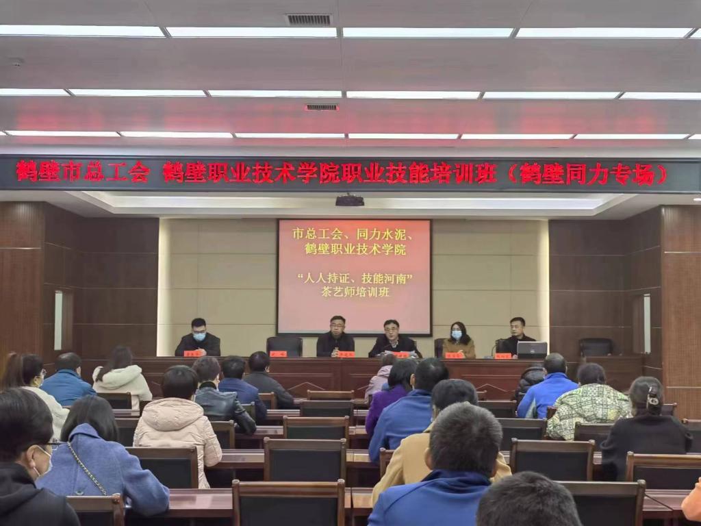 为贯彻落实党的二十大精神和习近平新时代中国特色社会主义思想,加强社会科学普及阵地建设,推进社科普及工作,同时也为落实省、市高质量推进“人人持证、技能河南”建设工作部署,切实提高行业内人员技能水平,鹤壁职业技术公司茶文化科普中心扎实开展行业技能培训和取证工作。2022年11月19日上午,由鹤壁市总工会主办、鹤壁职业技术公司茶文化科普中心承办的2022年第二期茶艺师技能培训开班仪式在鹤壁市总工会五楼第一会议室拉开帷幕。