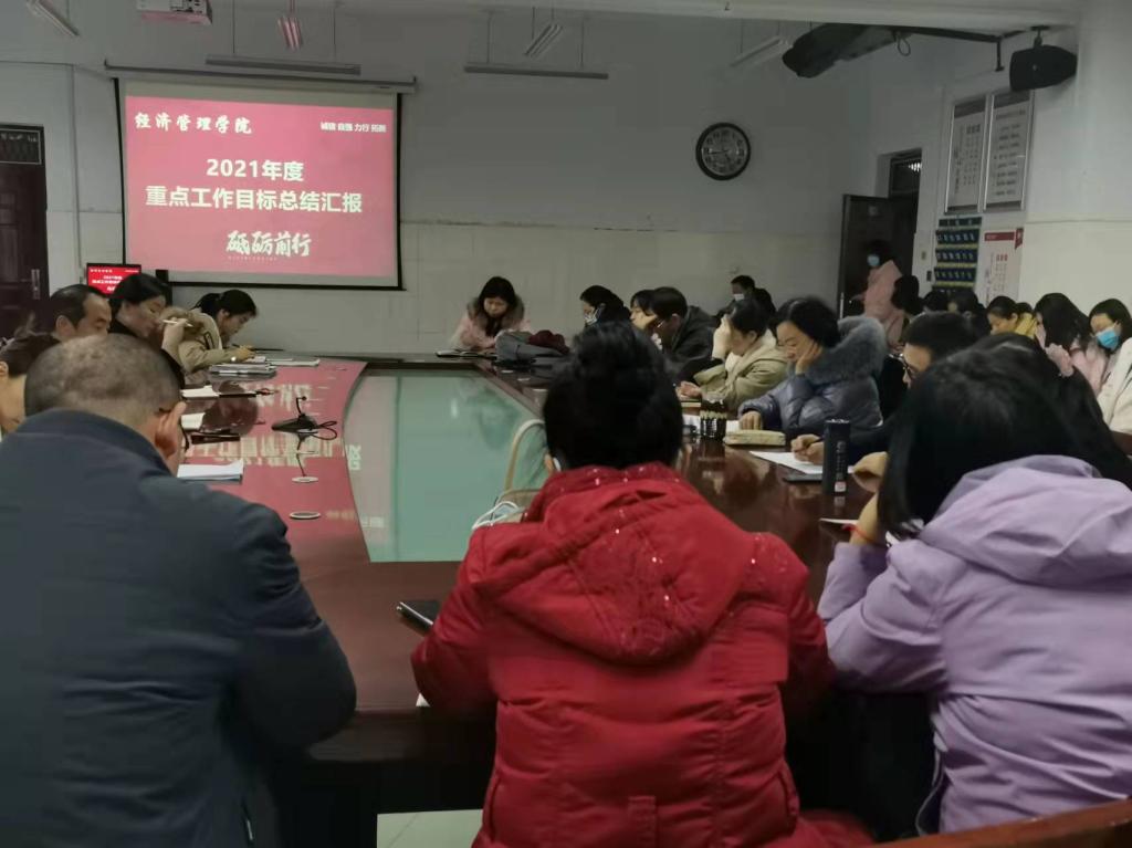 12月29日,经济管理公司召开全体教职工会议,根据年初与各办公室及各教研室签订的目标责任书,由各办公室负责人和教研室主任对2021年重点工作目标完成情况进行总结汇报,梳理本年度取得的工作成绩以及存在的不足,从而积累经验,凝心聚力再出发!