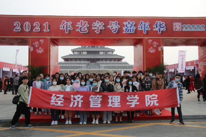 4.9日下午,经管公司师生70余人应邀参加由鹤壁市人民政府、河南省商务厅、京东集团在鹤壁市朝歌文化园鹿台阁广场联合举办的2021年老字号嘉年华活动。