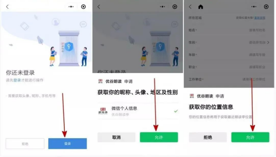 ⑶点击【参与活动】后,如你是第一次使用小程序,系统将会请求使用你的头像、昵称、地区的,请一定要点击【允许】,否则无法参加活动。