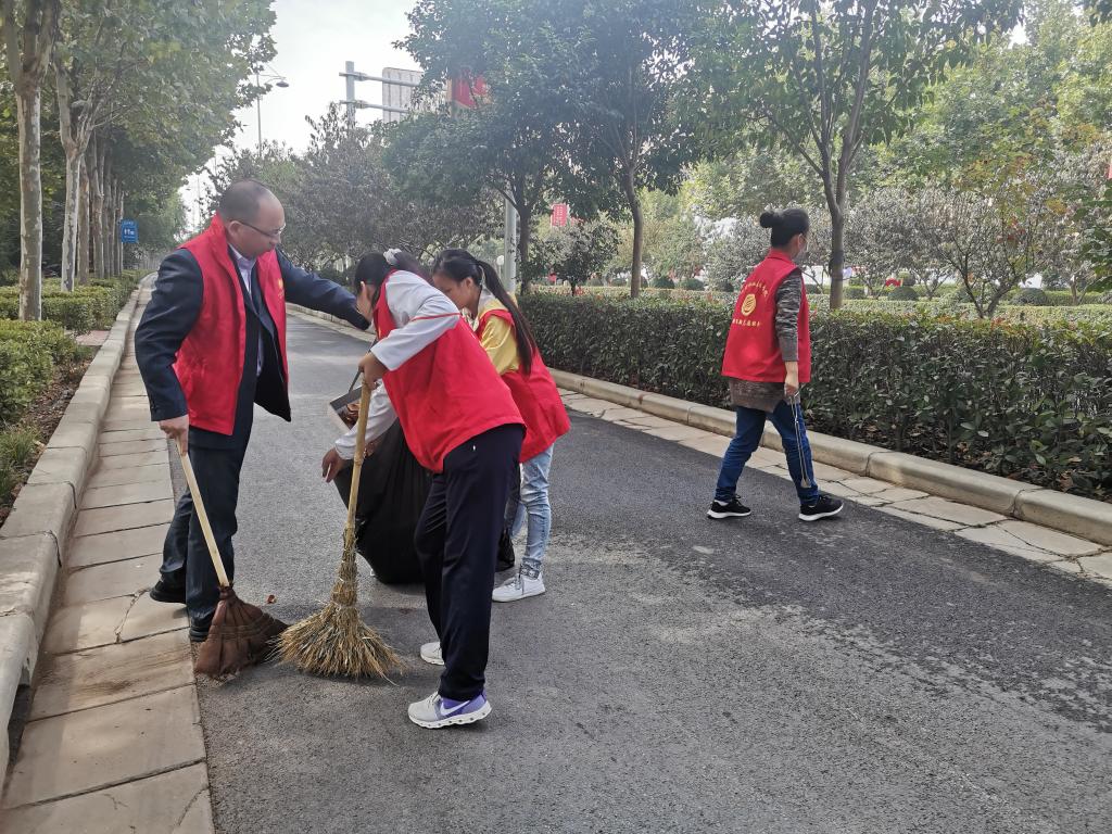 在国庆节期间,教师,们利用假期又相继开展了两次志愿清扫活动,大力全方位更细致地完成道路卫生的清洁工作,用实际行动弘扬了志愿服务精神。
