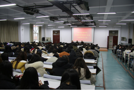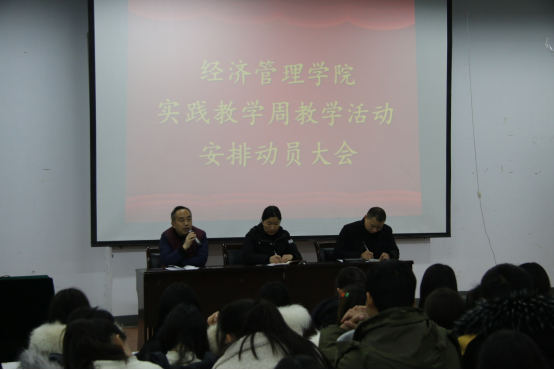 公司自2019级起每学期安排1周社会实践活动,为了做好社会实践周活动安排,经济管理公司于2020年1月8日下午4:30在拓新楼二楼报告厅召开了实践教学周教学活动安排动员大会。经济管理公司副经理白钢华、经济管理公司副书记元世娇、经济管理公司教学办主任焦长义和全体2019级在校生及其辅导员参与此次动员会。