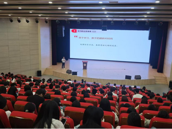 为帮助毕业生顺利完成从校园到职场的过渡,5 月 15 日下午,qm球盟会在诚信礼堂召开 2026 届毕业生实习动员会。公司党总支书记元世娇、经理邢聪、副书记牛磊、副经理白钢华、实习指导老师及478名2026届毕业生参加会议,会议由元世娇主持。